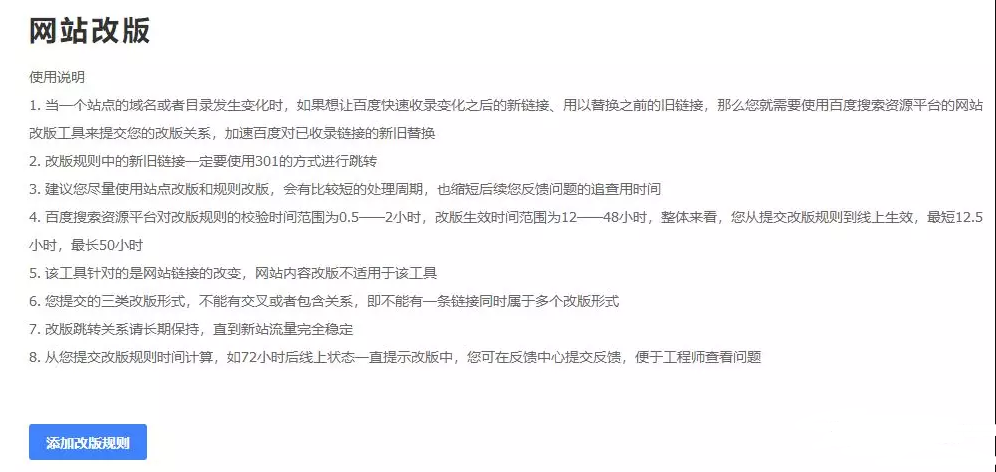 網站的鏈接改版首要用到的東西是百度站長渠道的網站改版東西,詳細細節闡明如下圖: